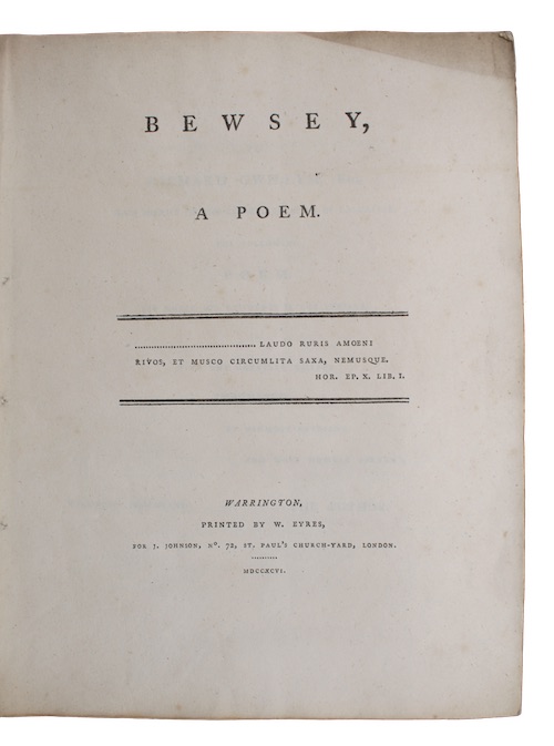 The sole edition of John Fitchett's (1776-1838) first published work, written at the age of eighteen; with which he had considerable success. The poem reimagines a popular Lancashire ballad, the subject of which is the murder of Sir John Butler of Bewsey Hall, near Warrington in 1463 (no concrete historical evidence appears to exist that this event ever actually occurred). Fitchett devoted much of the remainder of his life to his prodigious six- volume King Alfred, a Poem (Warrington, 1808-34).