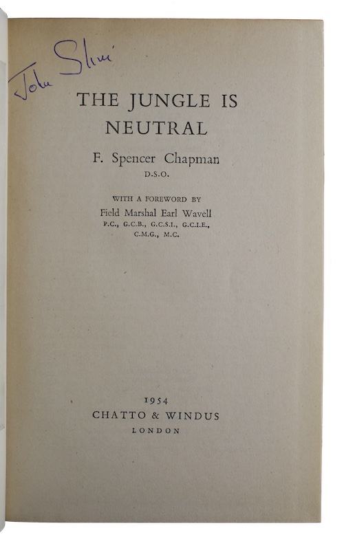 An early edition of explorer and mountaineer Frederick Spencer Chapman's (1907-1971) immensely popular account of operations behind the lines in Malaya during the Second World War, first published in 1948.