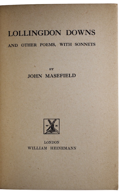The first British edition (published thirteen days after the American edition) of English poet and novelist John Edward Masefield's (1878-1967) collected of poems and sonnets inspired by his country retreat of Lollingdon Farm, Cholsey, Oxfordshire.